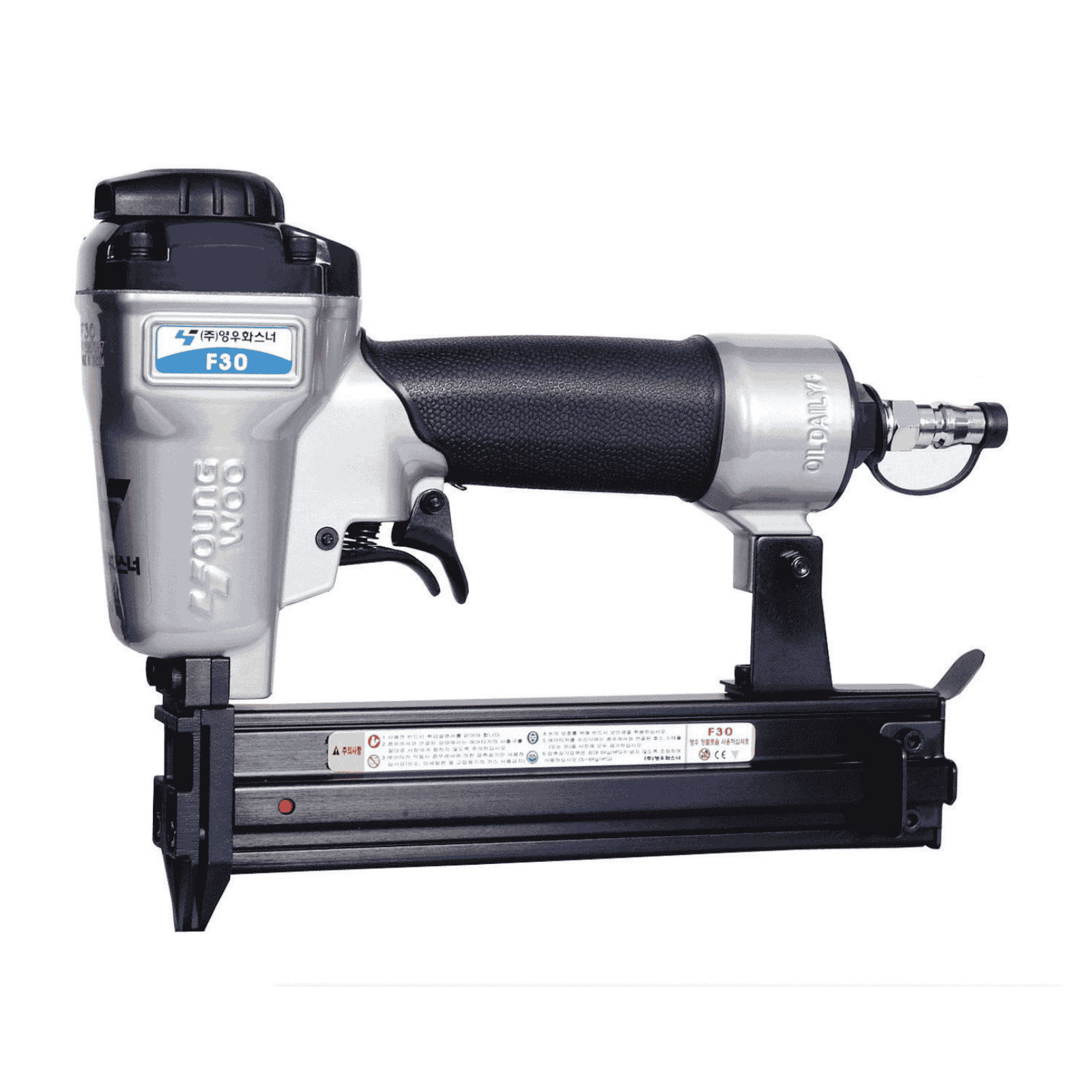 The Youngwoo F30 is a compact, multi-purpose 18-gauge F-pin bradder for light interior and furniture work. It drives 10–30 mm F-pins with consistent placement and low recoil. A light alloy body, non-slip grip and directional exhaust keep day-to-day use easy, while tool-free depth control helps you dial in clean, flush finishes on trims, frames and small joinery.